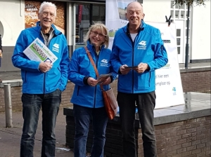In het winkel centrum waren Els van Es, Theun Schaaf en Rein Zijlstra aanwezig om de Typisch Leefbaar uit te delen. Die viel deze zaterdag bij de inwoners thuis in de brievenbus maar niet waar een Ja/Nee of Nee/Nee sticker zit geplakt. Op deze manier kon je toch een Typisch Leefbaar in je bezit krijgen.