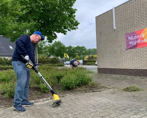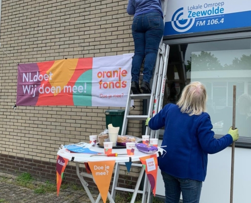 Handen uit de mouwen! Op zaterdag 29 mei hebben Els, Karin, Ben en Evert bij de Lokale Omroep Zeewolde klussen gedaan vanwege “NL doet”.