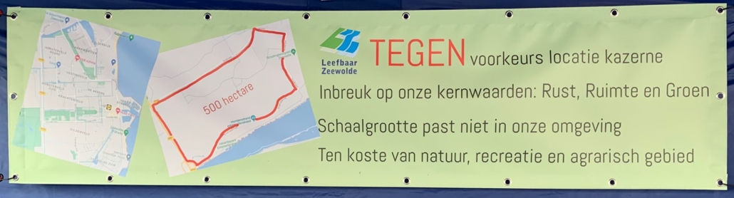 Op de Pinkenmarkt 2 september in het centrum van Zeewolde is de video gepresenteerd. Tevens werd een banner getoond in onze Leefbaar Zeewolde stand-tent waarop ook goed te zien is hoe groot 500 hectare is.