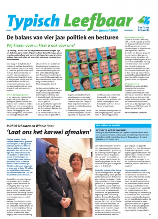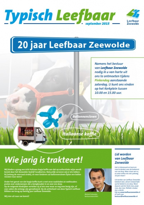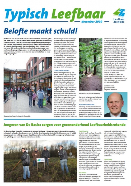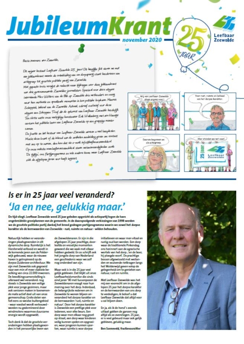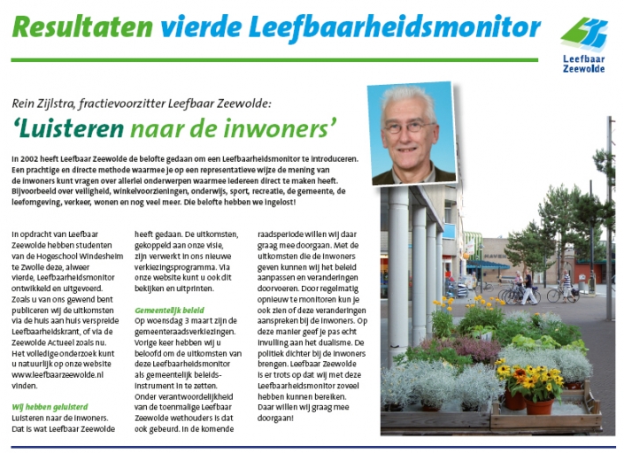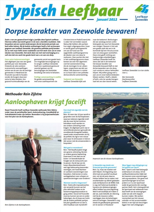 Op 17 november 2016 in de Flevomeer bibliotheek van Zeewolde vond een debatcafè met als thema ‘Democratie, een werkwoord’ plaats. Fractievoorzitter Ben Sonneveld van Leefbaar Zeewolde hield een voordracht over de transitie van burgerinitiatief in 1996 naar de grootste plaatselijke politieke partij in 1998.