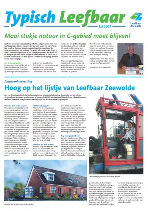 Van G-Gebied naar “Ontmoetingsbos”. Het plan van Leefbaar Zeewolde, januari 2009.